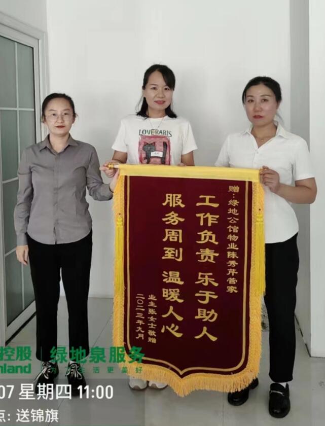 2023-09一份锦旗,凝聚着一个暖心故事一份认可,饱含着业主给予的信任绿地泉服务用行动书写故事把温暖和关爱传递给每一位业主