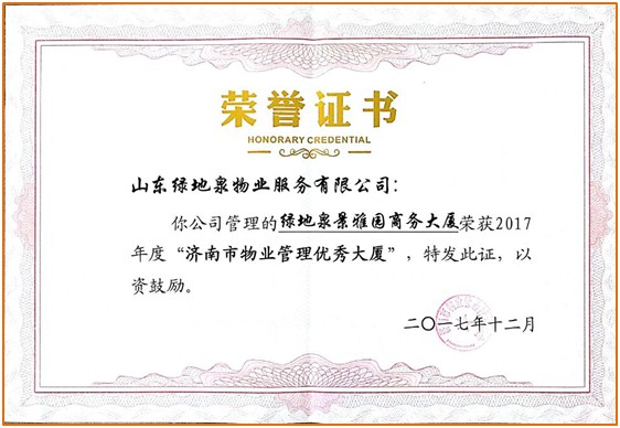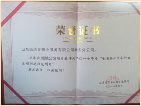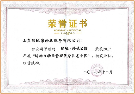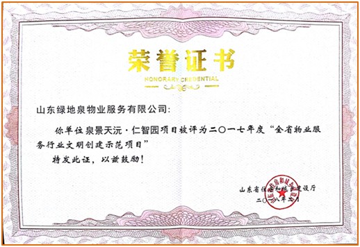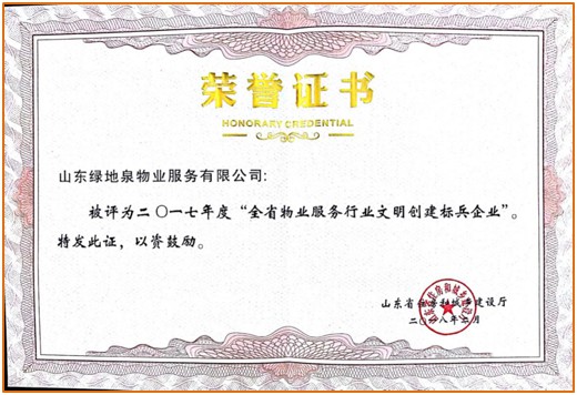 2020年荣获“2020 中国特色物业服务领先企业——山东本土物业服务百强企业满意度领先”奖项.