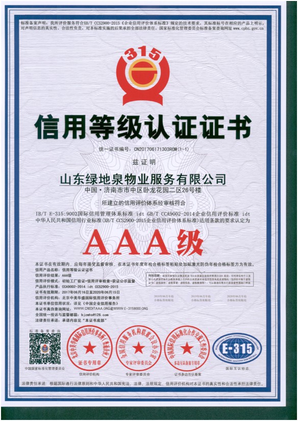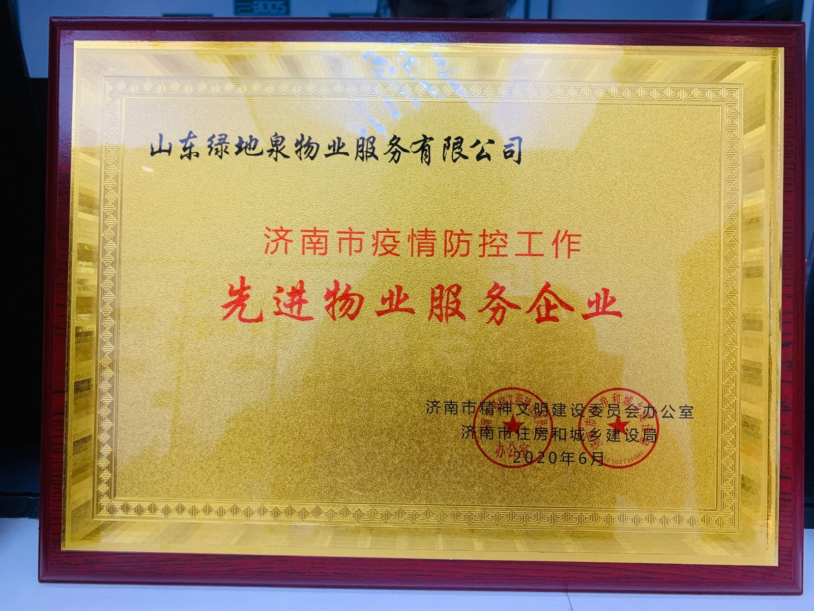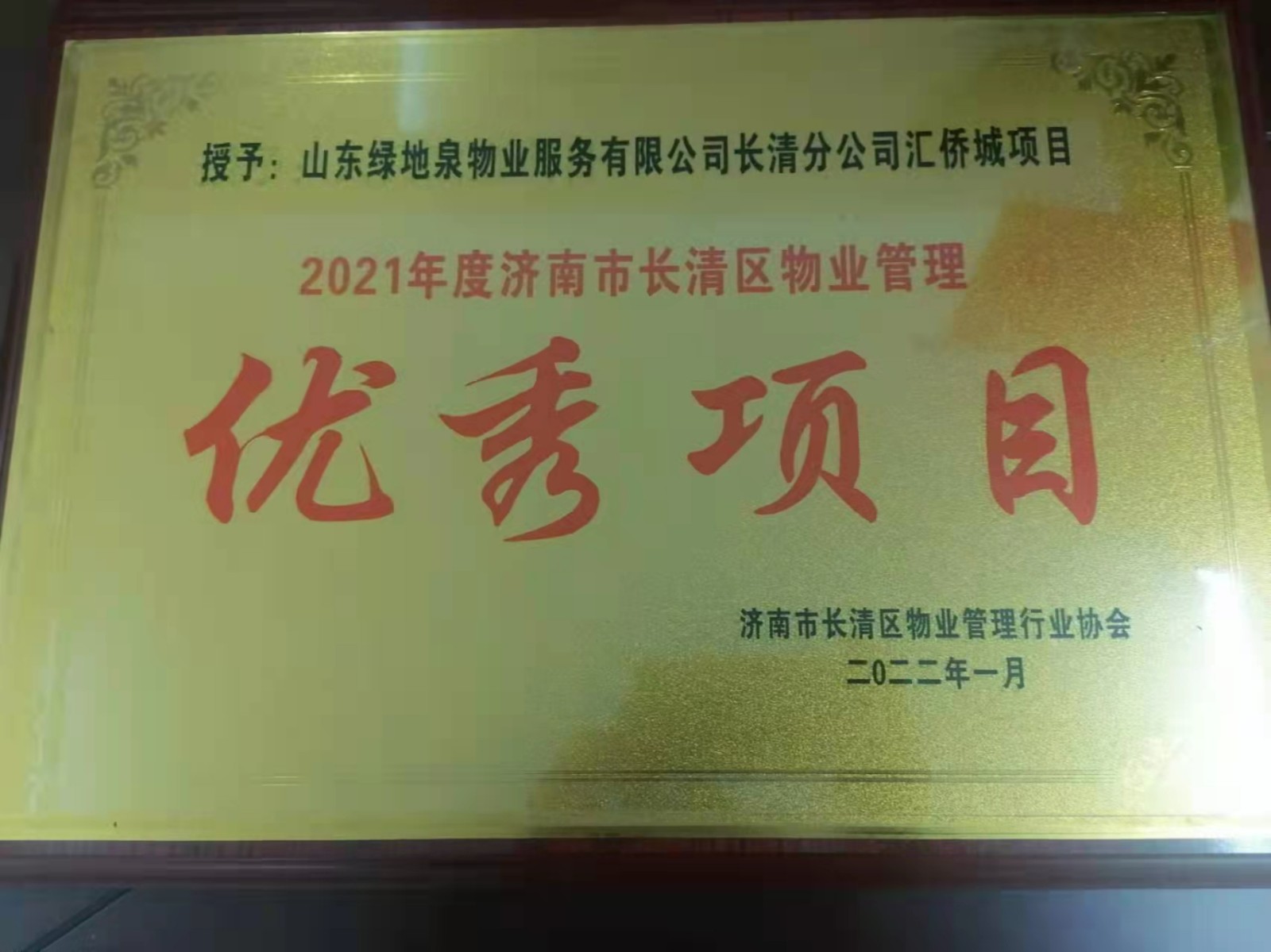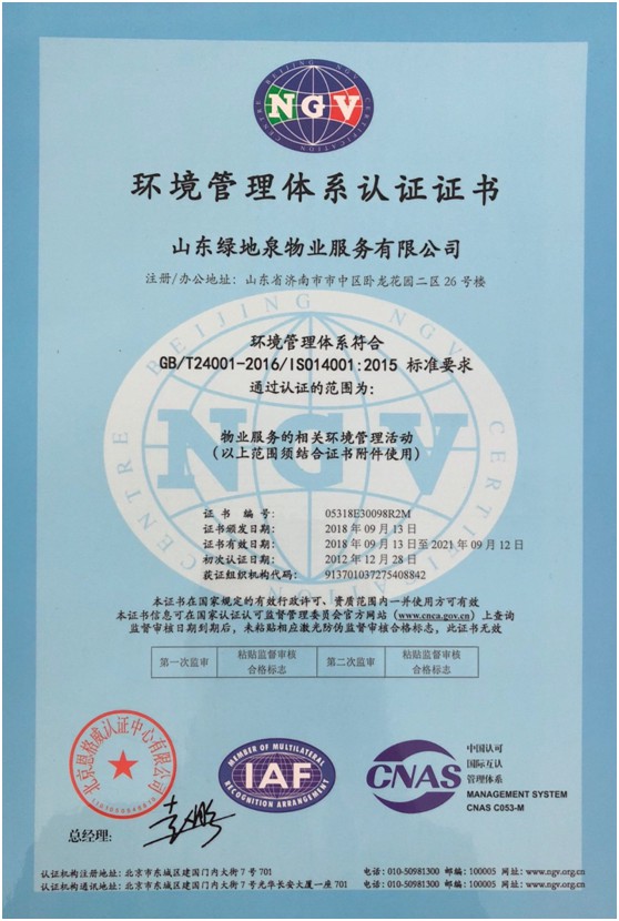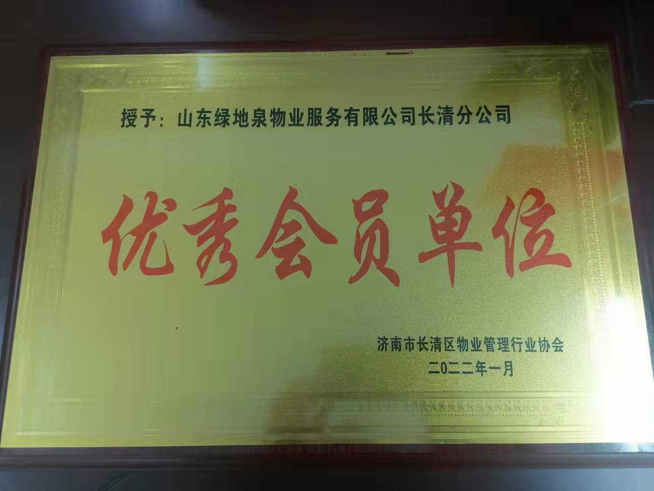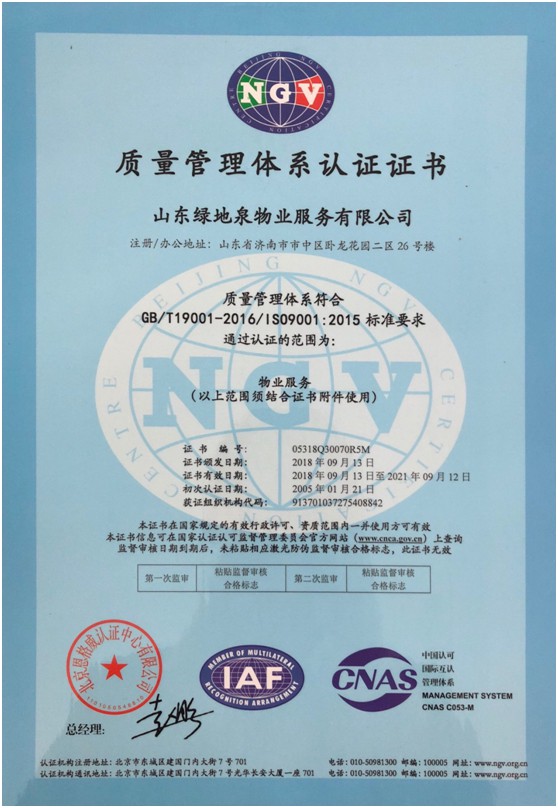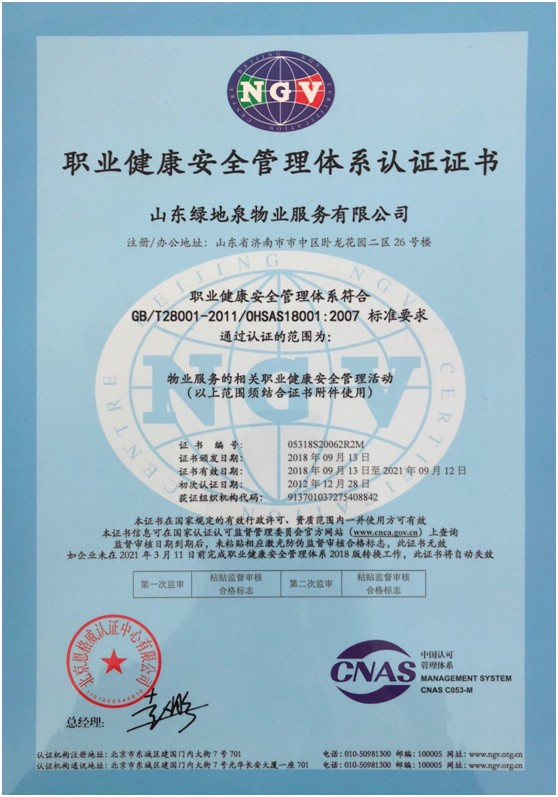 2021绿地泉服务荣获首届济南“金牌物业”领军企业及团体标准突出贡献奖荣誉称号