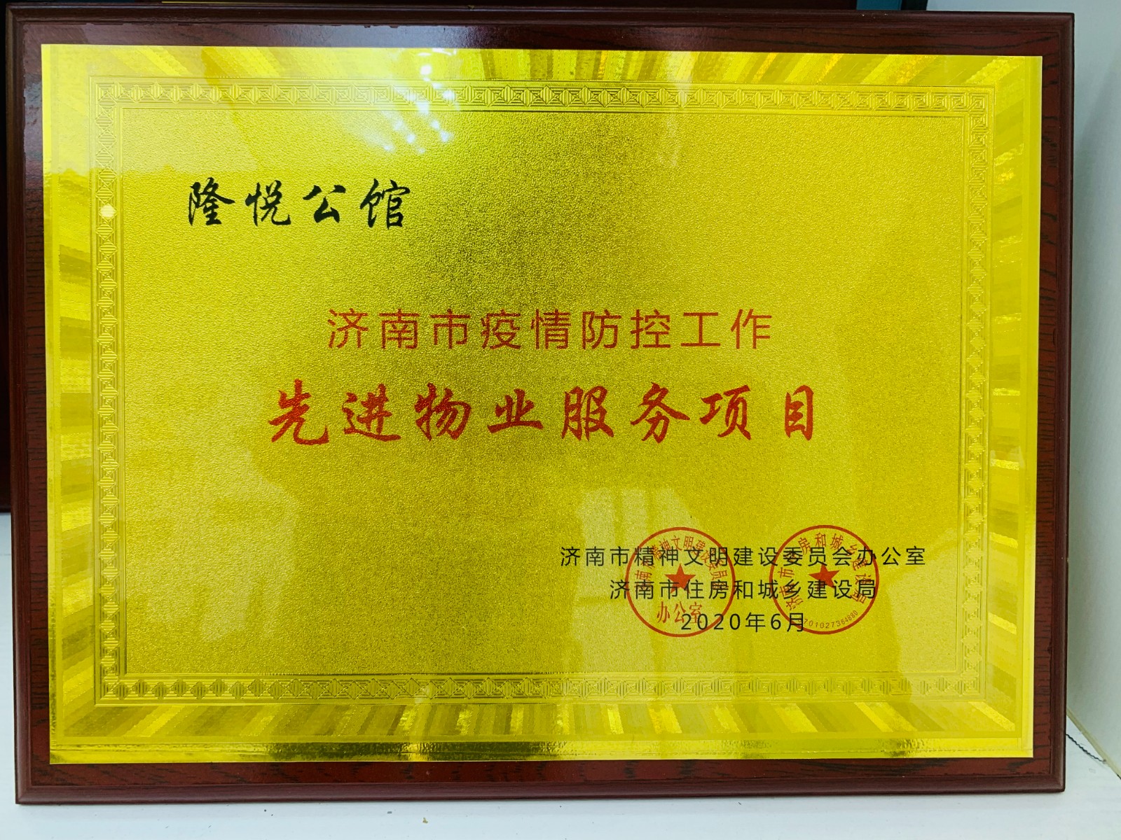 2020年荣获“新冠肺炎疫情防控工作先进物业服务企业”