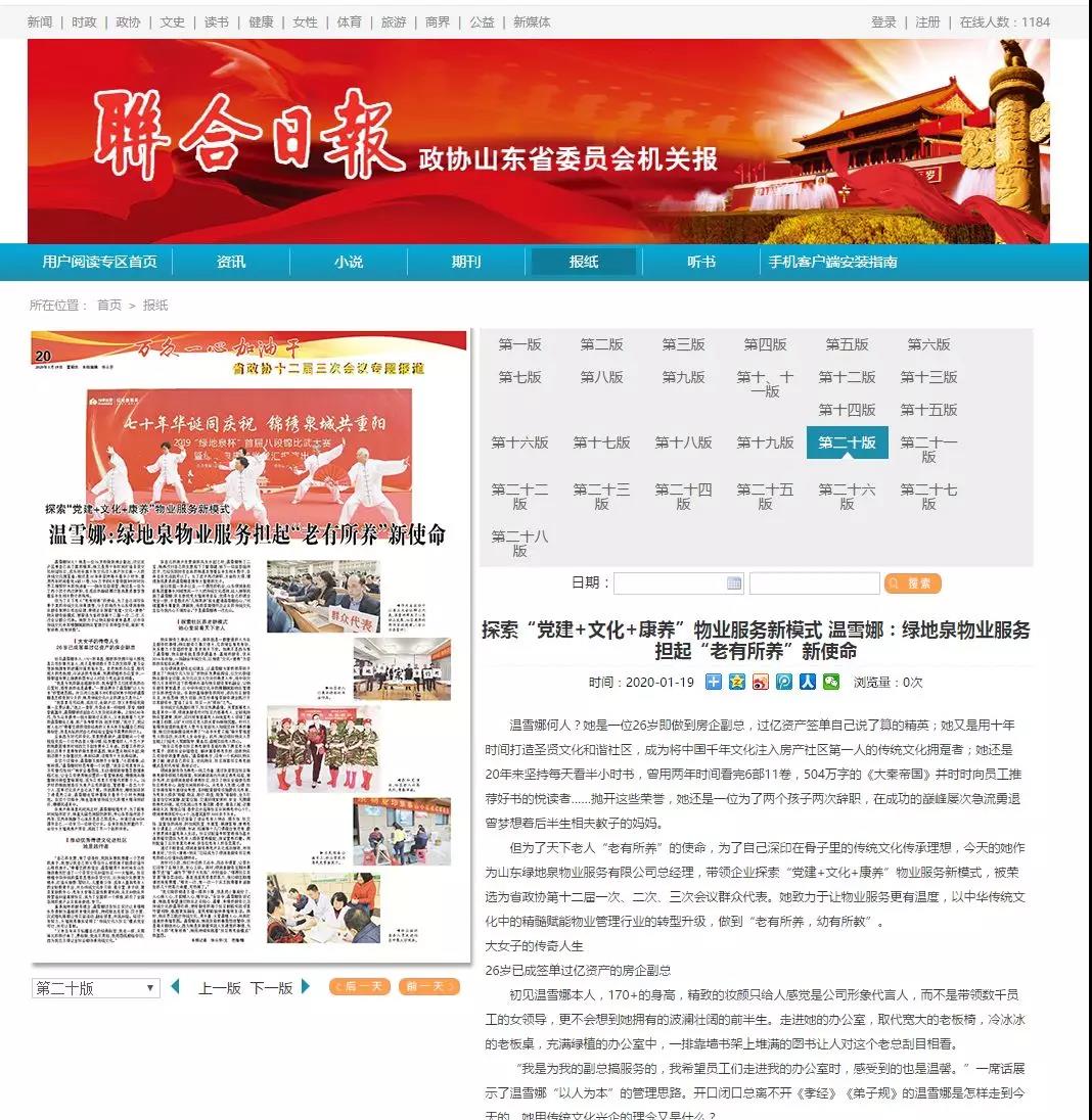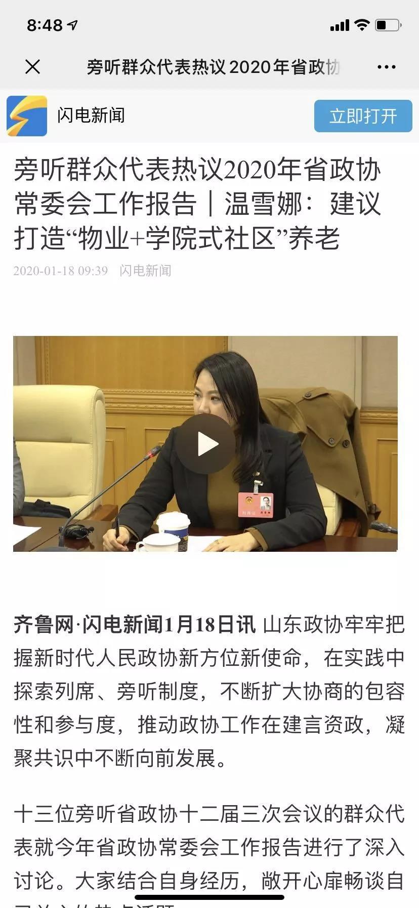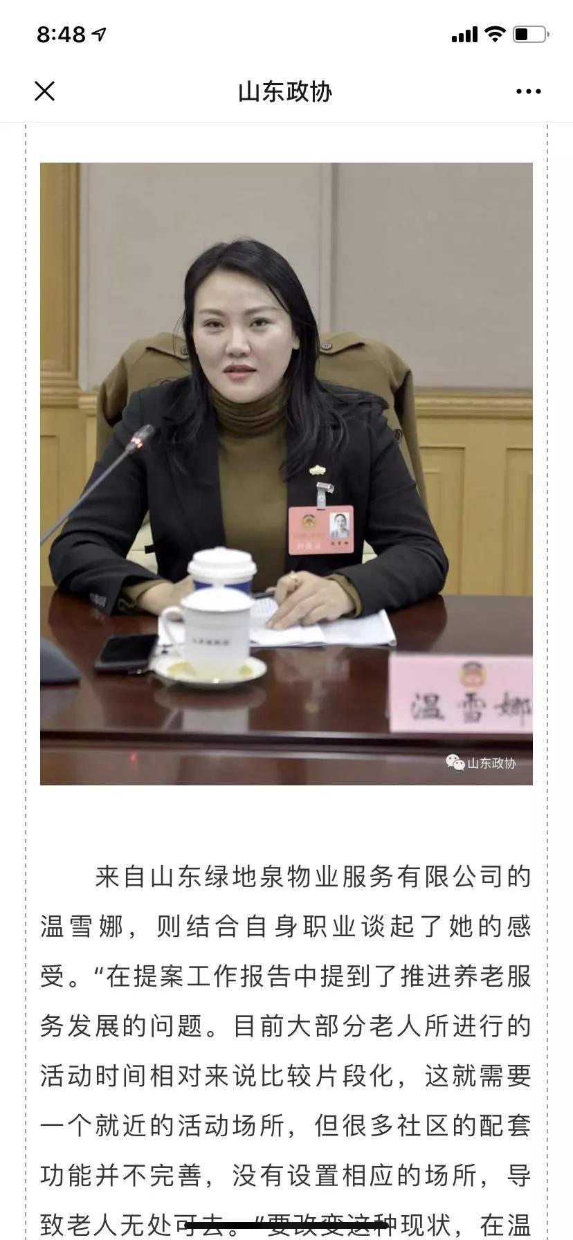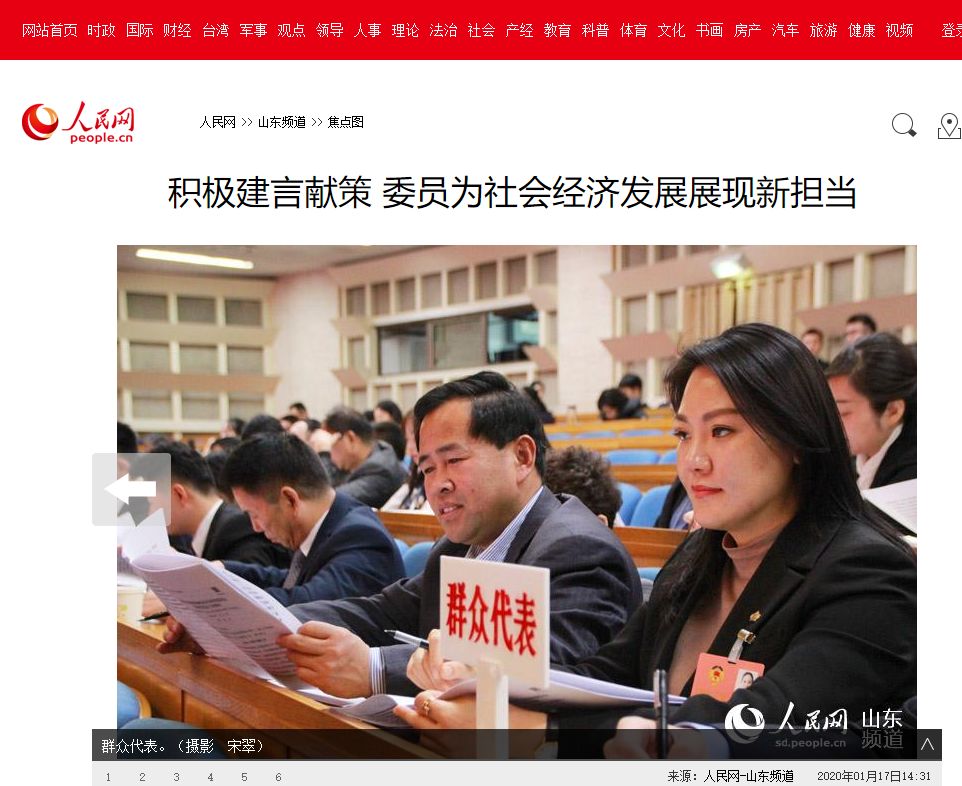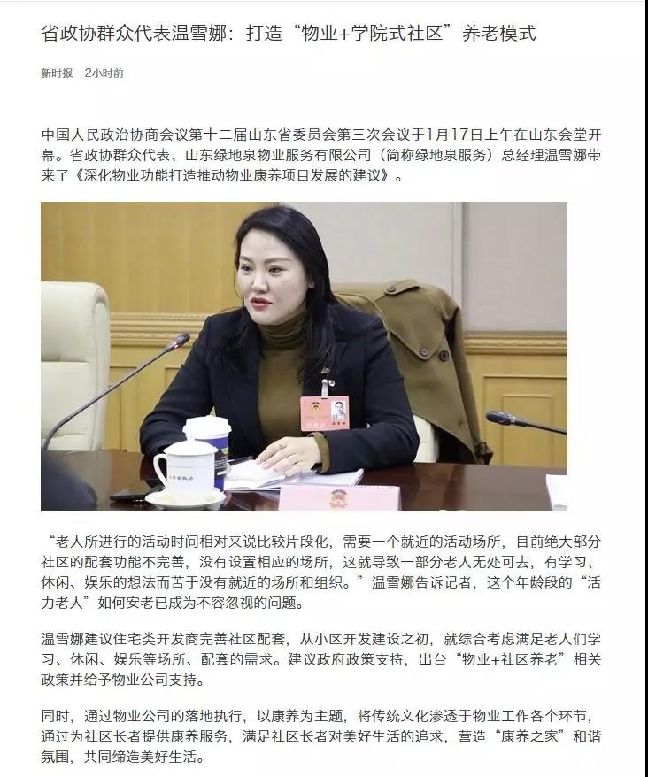 积极建言献策 委员为社会经济发展展现新担当。1月16日,山东省政协十二届三次会议旁听群众代表预备会在济南召开,12名群众代表首次集体亮相。根据省政协十二届三次会议“民声连线”活动方案,在有关媒体推荐基础上,省政协办公厅根据年龄、职业、参政议政表现等条件,绿地泉服务总经理温雪娜被评选为省政协十二届三次会议的群众代表。