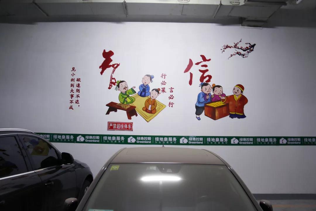 “有朋自远方来,不亦乐乎”“不以规矩,不能成方圆”“匹夫不可夺志”.........传统文化配上卡通文化配图,让墙面的形象瞬间变得“活起来”。你可能以为这是说图书馆或者美术馆的墙面,其实这些墙面来自我们服务的秀园老小区改造后的车库墙面,因地制宜打造美丽车库,让车库“活起来”,醒目的灯光标识,让业主一眼就会看到家的方向!按照人体视觉感受搭配明亮而温馨的颜色,不同的功能色彩分区给人带来安全感。停车也可以心情美美哒......让业主感到无比幸福。