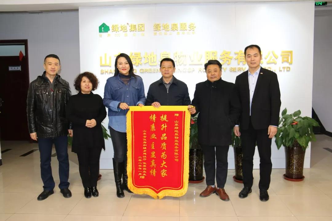 “情系业主显真情 提升品质为大家”。1月15日下午,绿地泉服务收到了来自山东省住房和城乡建设厅机关服务中心的一面旗帜,这面锦旗代表了建设厅领导及家住秀园的全体机关宿舍业主对绿地泉服务品质的感谢和高度认可。