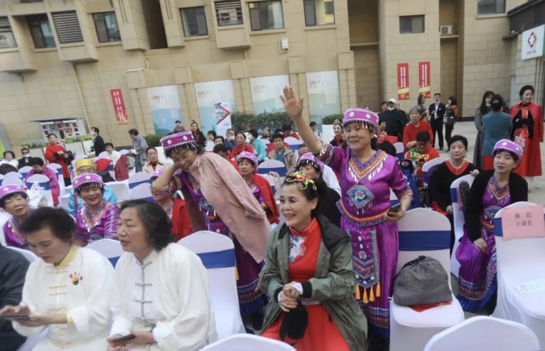 葫芦丝小课堂的学员们身着傣族服饰带来的葫芦丝演奏《竹楼情歌》,曲调动听,仿佛置身于在风景秀丽的西双版纳,傣族竹楼隐匿在浓密的绿荫之中,用悠扬的笛声表达着对康养之家的深厚感情。