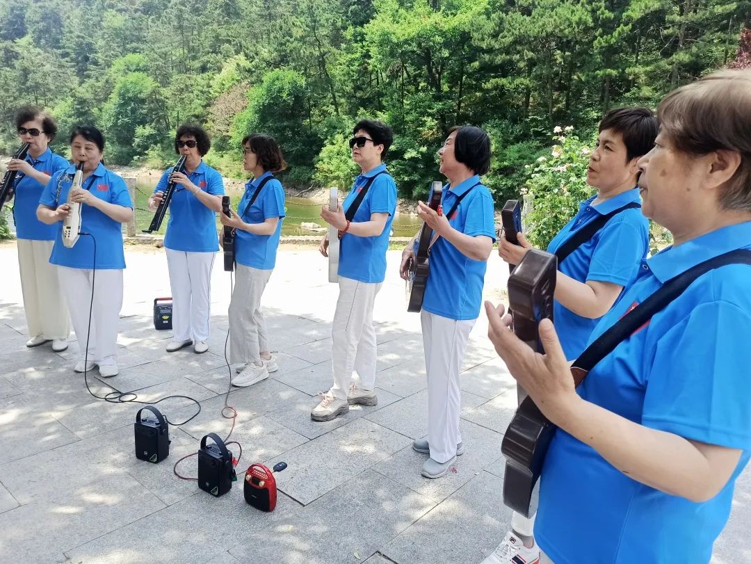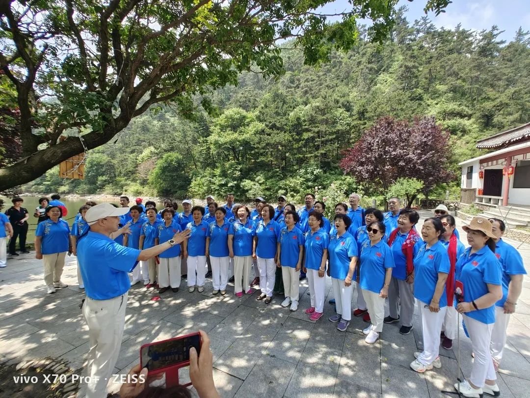 在欣赏自然风景的同时感谢领锋珠宝首饰(深圳)有限公司总经理林伟龙为绿地泉服务康养艺术团提供的服装支持以及其他爱心人士的慷慨相助。大家身穿统一定制的绿地泉康养艺术团团服在山清水秀之间翩翩起舞纵情高歌,歌唱美好生活,歌唱祖国大好山河!